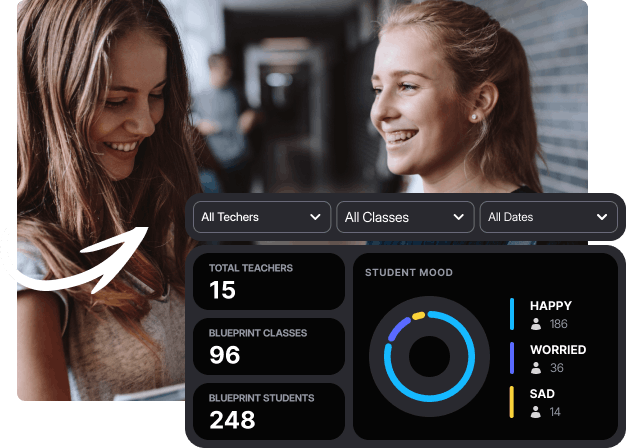 Blueprint integrates captivating emotional intelligence content, unifying student well-being and academic success district-wide. With essential life skills, resilience, SEL, and mental health as natural outcomes, we also align with state standards and portraits of a graduate. Empower educators and gain actionable insights to drive improvement across all schools.
